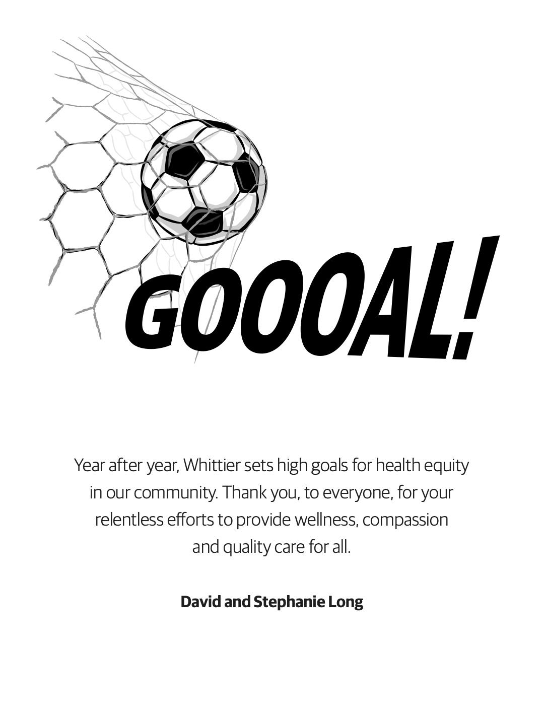 Every year Whittier Street Health Center throws an Annual Roast Gala. And this year, Executive Chairman of Liberty Mutual, David Long, was being honored for his work as a standout business leader and philanthropist. The evening embraced a soccer theme. And my assignment was to embrace that same theme into the event’s program ad.